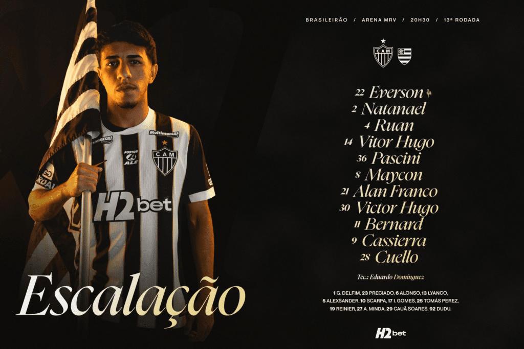 Se o Flamengo já divulgou a escalação para a partida, o Atlético-MG fez o mesmo. Sem Hulk, o time terá Bernard, Cassiero e Cuello no ataque. O jovem Pascini também entra na vaga de Renan Lodi.