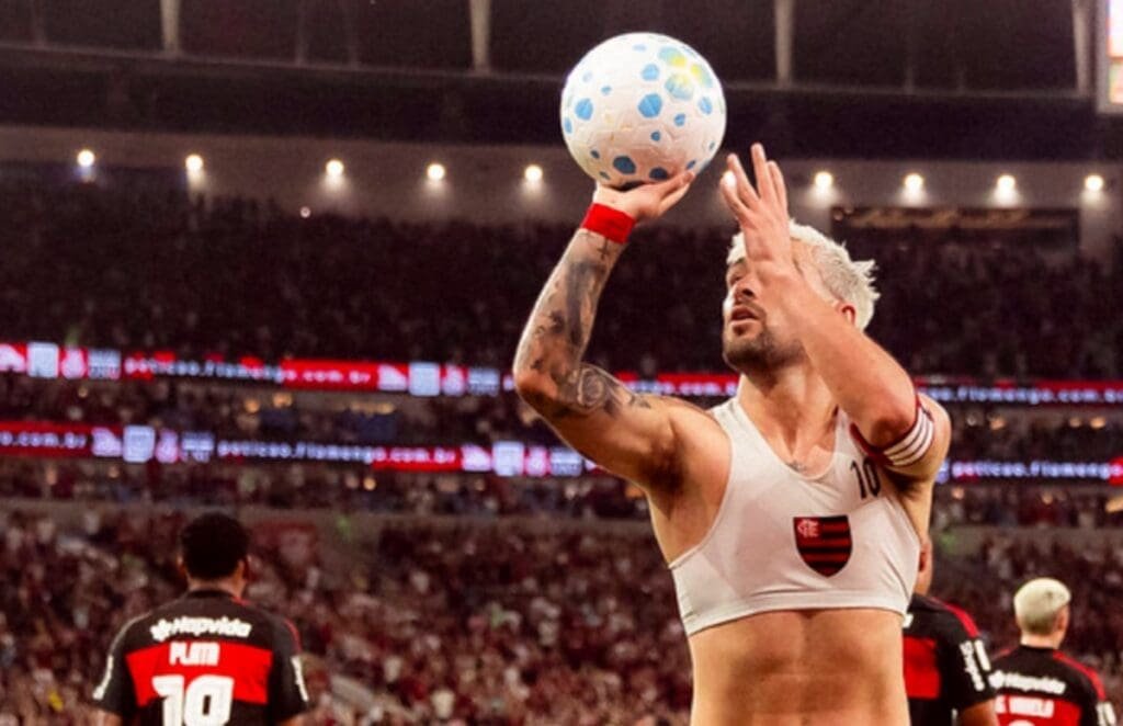 O gol do Flamengo sai aos 17: Pedro limpa o goleiro e toca para Arrascaeta abrir o placar: 1 a 0, Mengão. Agora, o uruguaio chega a 104 gols e entra no top-20 de artilheiros da história do Mais Querido, empatado com Evaristo de Macedo.