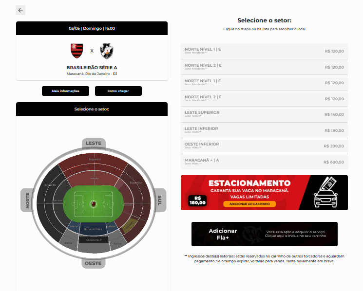 A Nação vai lotar o Maracanã, e o clássico estará lotado para a partida válida pelo Brasileirão. O site oficial de venda de ingressos do Flamengo já não consta mais opções para comprar e o sistema mostra todos os setores esgotados. Confira.